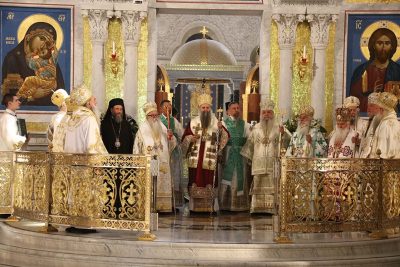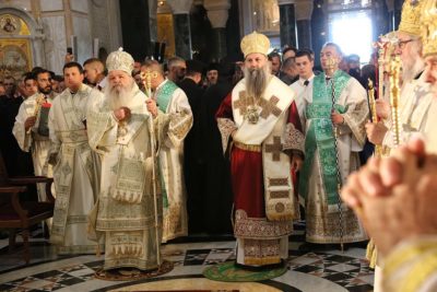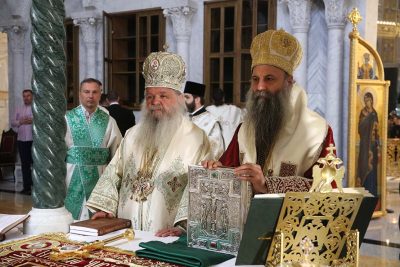 У присуству више хиљада верника, у Саборном храму Светог Саве у Београду, 19. маја 2022. године, свету архијерејску Литургију служили су Његова Светост Патријарх српски г. Порфирије и Његово Блаженство Архиепископ охридски и македонски г. Стефан уз саслужење архијереја Српске Православне Цркве и Македонске Православне Цркве – Охридске Архиепископије, у молитвеном присуству Његовог Блаженства Архиепископа охридског и Митрополита скопског г. Јована.