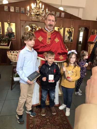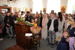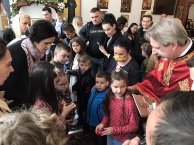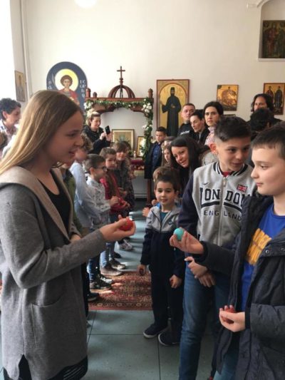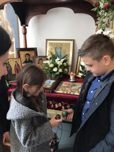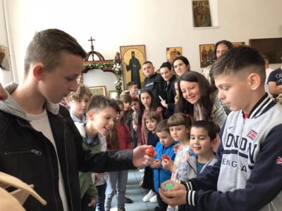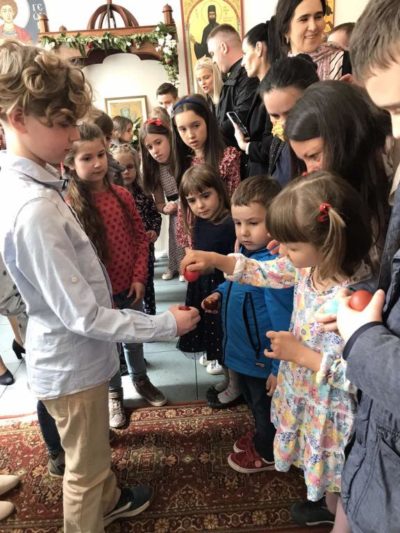 Богу хвала, да су ове године здравствени услови и временске прилике дозволиле да се после дужег времена поново о Васкрсу окупимо у овако великом броју. По завршеној Светој Литургији и Причешћу, а по подели Васкршњих јаја и нафоре, за децу је била велика радост учествовати у такмичењу туцања васкршњим јајима. Прву награду за најјаче јаје ове године је добио Теодор Глишовић, другу Никола Петровић и трећу Хелена Стојановић. Захваљујем свој деци која су у такмичењу учествовала, и желим да вам  кажем, да сте сви поред ово троје прве деце, победници у радости такмичења у име Христово. Децо хвала вам на учешћу!