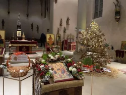 По завршеној Светој Литугији и Причешћу у припрати цркве преломили смо Божићну Чесницу дочекавши у раним јутарњим сатима Рождество Христово.