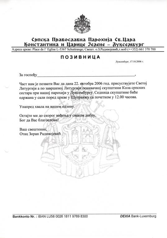 Позивница и Статут Кола Српских Сестара